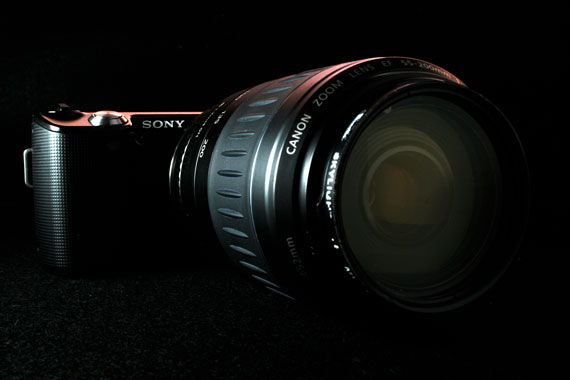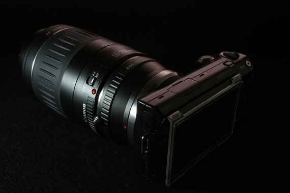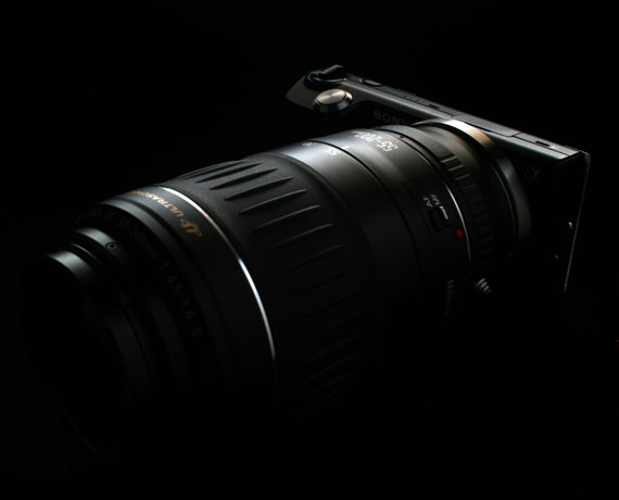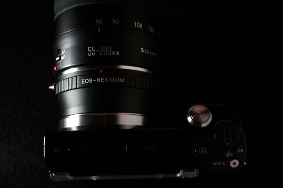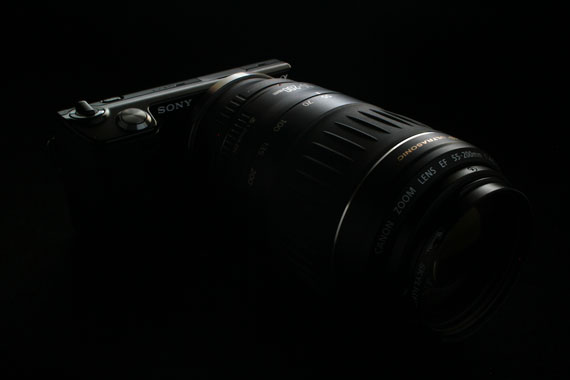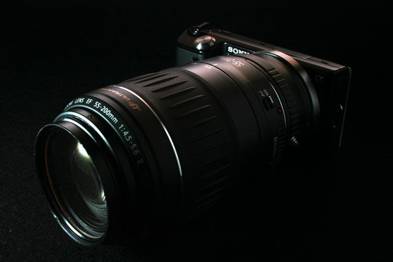 SONY NEX-5 にマウントアダプターで Canon EF 55-200mm F4.5-5.6 II USM を装着する