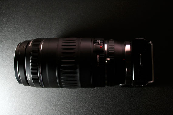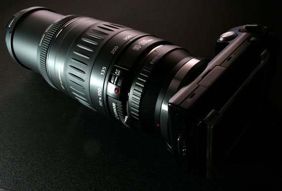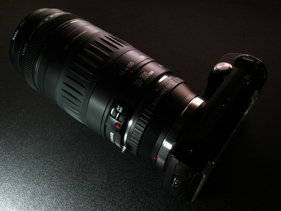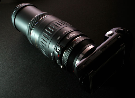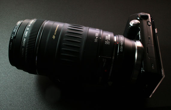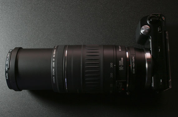 SONY NEX-5 にマウントアダプターで Canon EF 90-300mm F4.5-5.6 USM を装着する