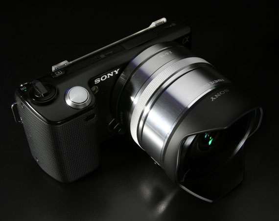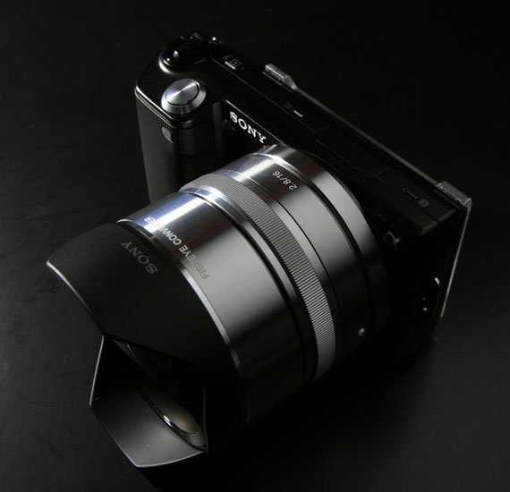 まず E16mm F2.8レンズを NEX に装着します。