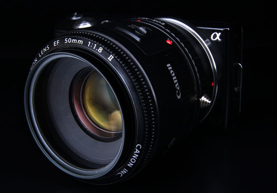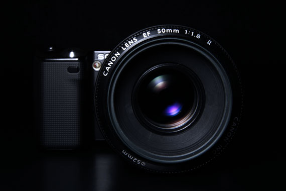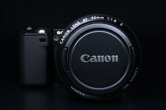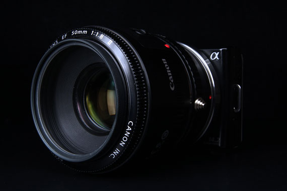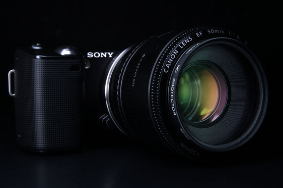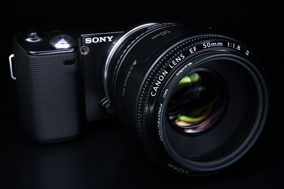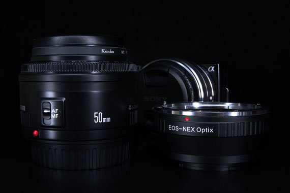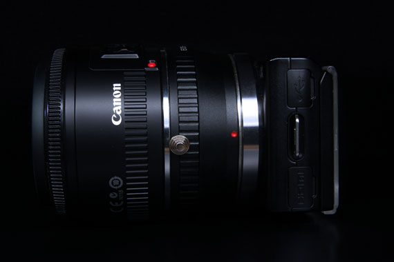 もちろんSONY NEX-5 に直接取り付けることはできないので、