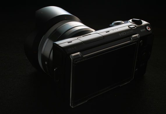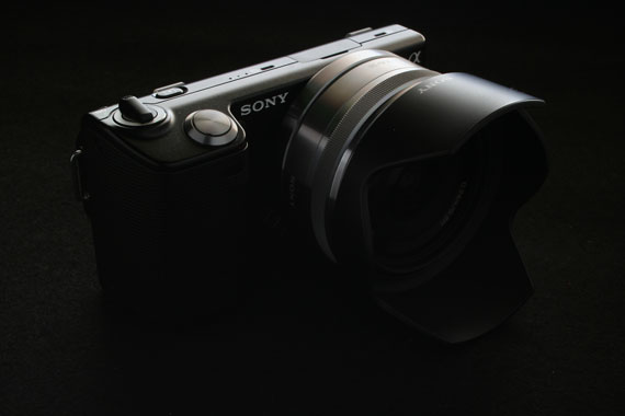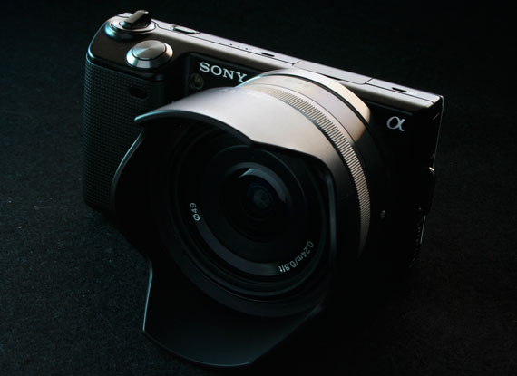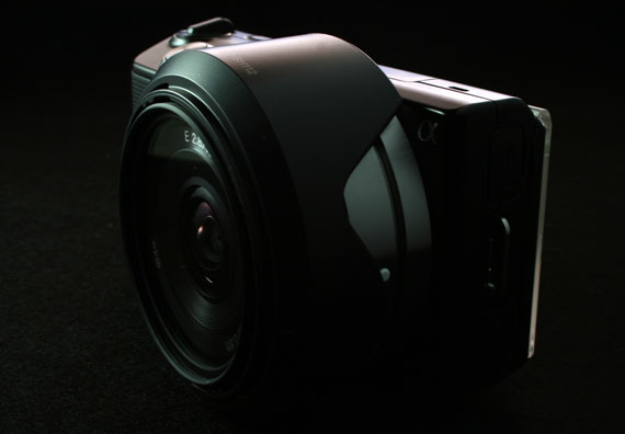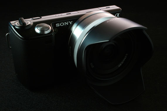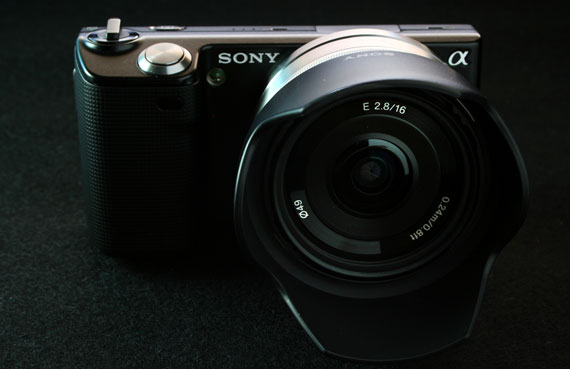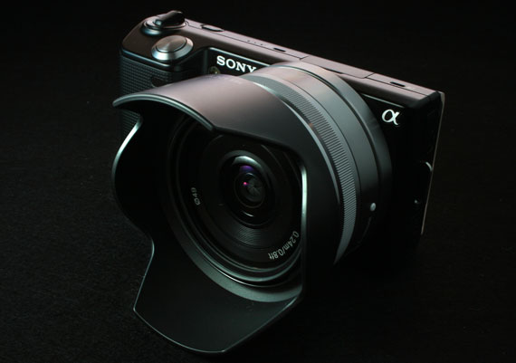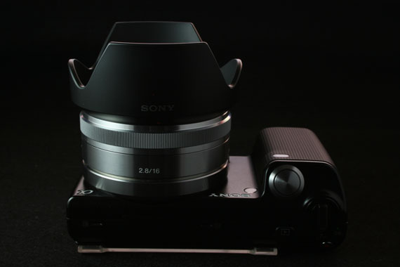 SONY NEX-5 付属レンズフードを装着(パンケーキレンズ)